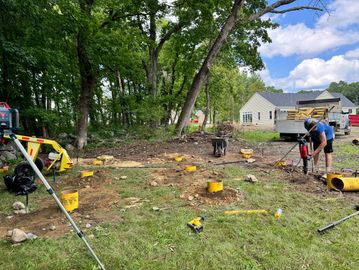 Usually installed (9) or (12) at a time based upon Shed or structure plans, we auger 8", 10", or 12" tube holes up to 48" deep. All tubes are laser aligned and leveled, then filled with 4300 psi concrete and optional galvanized strapping.